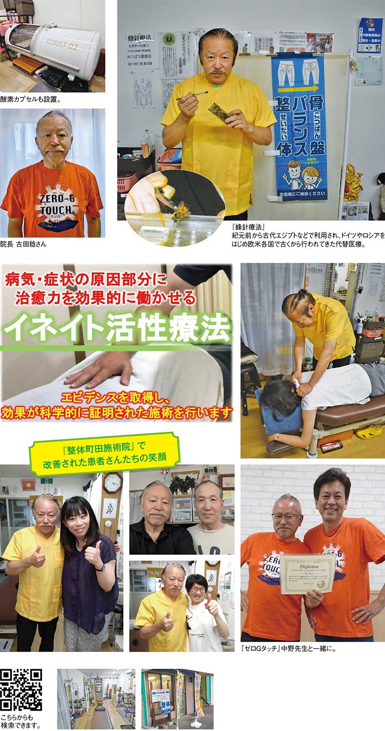 東京都町田市にある『整体町田施術院』は、徒手検査に基づく見立てと痛みの少ないアプローチで全身の状態を整えることを重視する施術院だ。院長の古田稔さんは、長年にわたり骨格・筋膜調整やカイロプラクティック、正体法など幅広い技術を修得し、経験を積み重ねてきた。「日本アピセラピー協会」副理事長として蜂由来素材の知識普及にも尽力している。『蜂針療法』とは、約50種の成分が含まれるという西洋ミツバチの毒を異常箇所や東洋医学のツボに刺すことで、血行促進や新陳代謝の向上を図る施術のこと。古代エジプトで利用されていた歴史があり、現在は欧米諸国でも研究が進められている伝統的療法だ。また、『イネイト活性療法』は、脳の反射機能に着目した独自の調整法だ。人の身体は異常部位に触れられると脳が瞬間的に危険信号を発し、筋肉が弛緩する反射を示す。この反応を手掛かりに、骨格の歪みや筋肉の位置異常、内臓の収縮や弛緩などを統括するポイントを検出する。検出後は、その部位に軽く触れる程度の刺激を与えることで自然な回復力の働きを促す。従来の施術では数カ所ずつしか対応できなかった部分を、数十カ所同時に調整する発想を取り入れている。『ゼロGタッチ』は、東洋医学の理論と骨格調整をもとに体系化された手技療法だ。「触れる」「寄せる」「降ろす」の三つのステップで構成されており、なでるようなソフトタッチで筋肉の緊張を短時間で解きほぐす。関節、骨、骨盤を弾力のある状態に調整することで、日常生活で常にかかる重力ストレスを軽減し、身体を重力から解放。軽やかな身体感覚へと導く調整法だ。古田院長は、常に新しい知見を学び、臨床に応用する姿勢を大切にしている。伝統的な療法と現代的な技術を融合させ、地域に根差した施術の場を築いてきた。これからも、安全性に配慮しながら知識と技術の普及に努め、身体に寄り添う専門的なアプローチを追究していく。