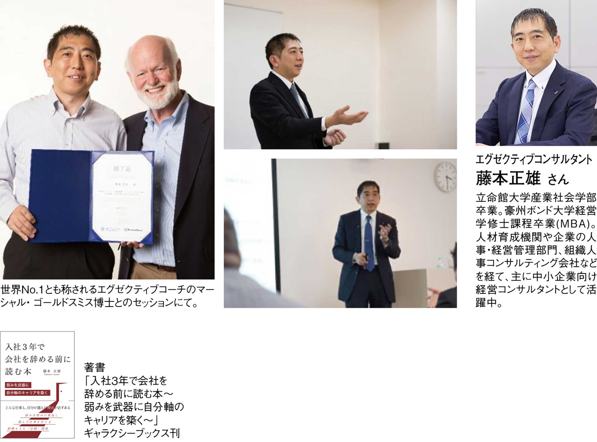 『株式会社小宮コンサルタンツ』エグゼクティブコンサルタントの藤本正雄さんは、経営戦略・事業戦略・組織戦略・事業承継・研修などの幅広い支援を通して、企業の人と組織に関する課題解決に取り組んでいる。藤本さんは、人材育成専門機関、企業の人事・経営管理部門、組織人事コンサルティング会社などでの経験を重ね、現在は経営者や社員へのコーチングを含めた実践的な支援を行っている。対話を重視し、組織の内側から変革を促していくアプローチが特長だ。経営とは、社員一人ひとりの可能性を最大限に引き出せる環境を整えることだと考えており、経営者の理念や想いを丁寧にくみ取り、その基本スタンスを尊重しながら、経営層と共に課題を明確化し、成果につながる支援を行う。著書「入社3年目で会社を辞める前に読む本〜弱みを武器に自分軸のキャリアを築く〜」では、これまでの知見をもとに、キャリアの選び方や組織との向き合い方、自分の強みではなく弱みに向き合うこともヒントになるという視点などを紹介。悩む若手に働く意味を見つめ直すきっかけをくれる一冊だ。