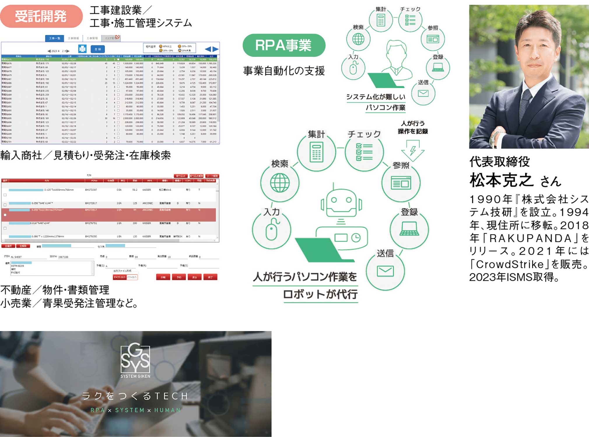 「ラクをつくるTECH」を掲げる『株式会社システム技研』代表取締役の松本克之さんは、東京都八王子市旭町に拠点を構える情報システム開発会社だ。業務のムダや手間を減らし、使いやすく、作業効率を上げるためにシステムを届けることを理念に、企業や店舗、団体の業務改善に取り組んでいる。