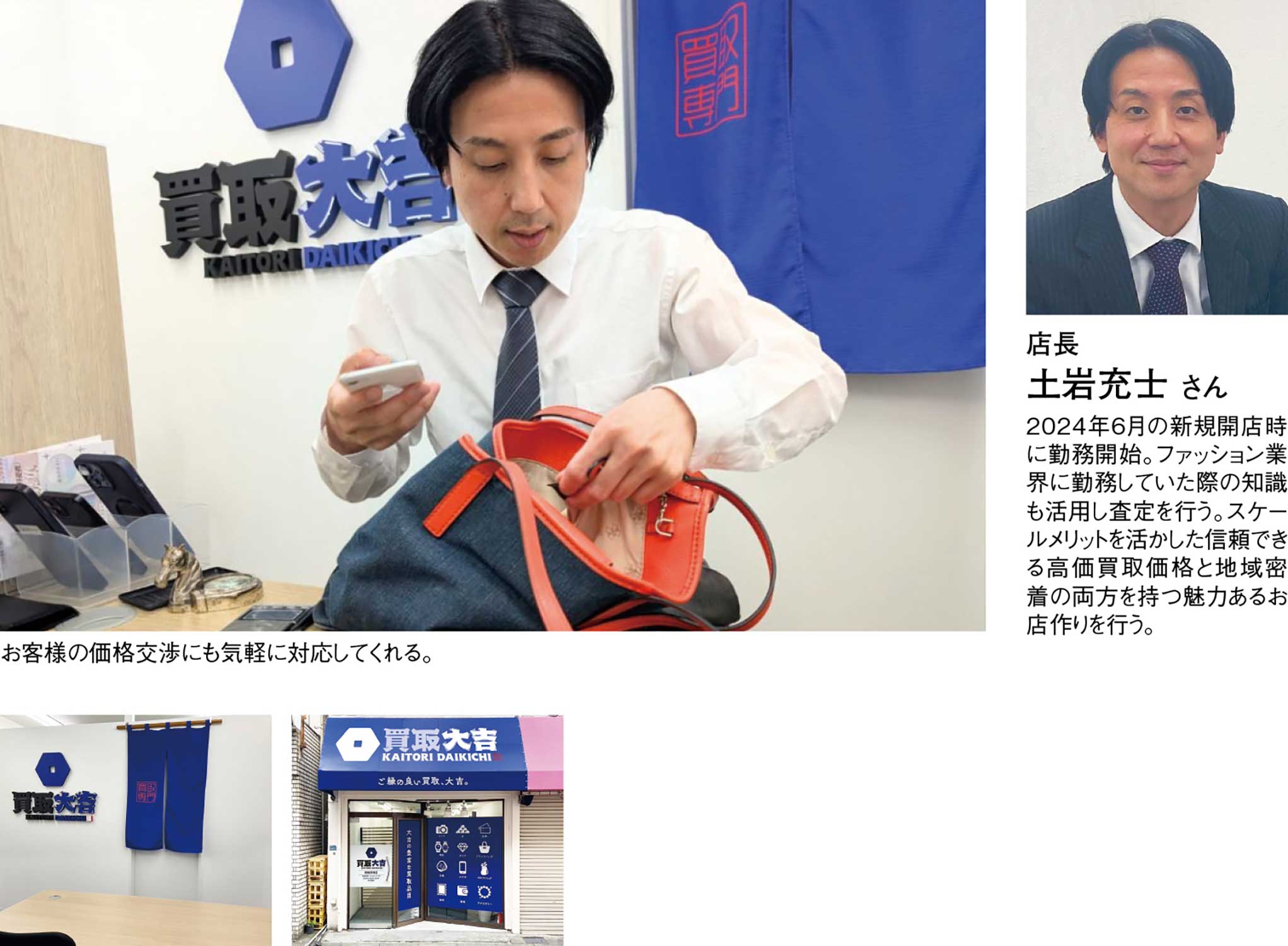 東京・赤塚一番通り商店街にある『買取大吉板橋赤塚店』は、地域に根ざした温かな接客と全国展開のスケールメリットを活かした安心の査定価格で、多くの信頼を集めている買取専門店だ。金・貴金属やブランドバッグ、時計などの定番品に加え、ジャンルを問わず幅広い品目に対応しているのが特長。たとえ査定額がつかない場合でも、持ち込まれた品は丁寧に引き取ってもらえるので、処分に困ったものでも気軽に相談できる。店長の土岩充士さんをはじめとするスタッフのアットホームで親近感のある対応が魅力。買い取ることを前提にせず、持ち主にとっての本当の価値に目を向けてアドバイスしてくれる。常にお客様の立場に立った誠実な提案を心がけており、初めての利用でも安心してお任せできる体制が整う。また、清潔感のある店内とぶれない接客姿勢で買取成立の有無にかかわらず、心地よく帰ってもらえるような空間づくりを心掛ける。出張買取にも対応しており、遺品整理や引っ越し、断捨離などの際にも心強い味方になってくれる。気軽に立ち寄り、おしゃべりするだけでも元気をもらえる温かな店づくりを行っている。