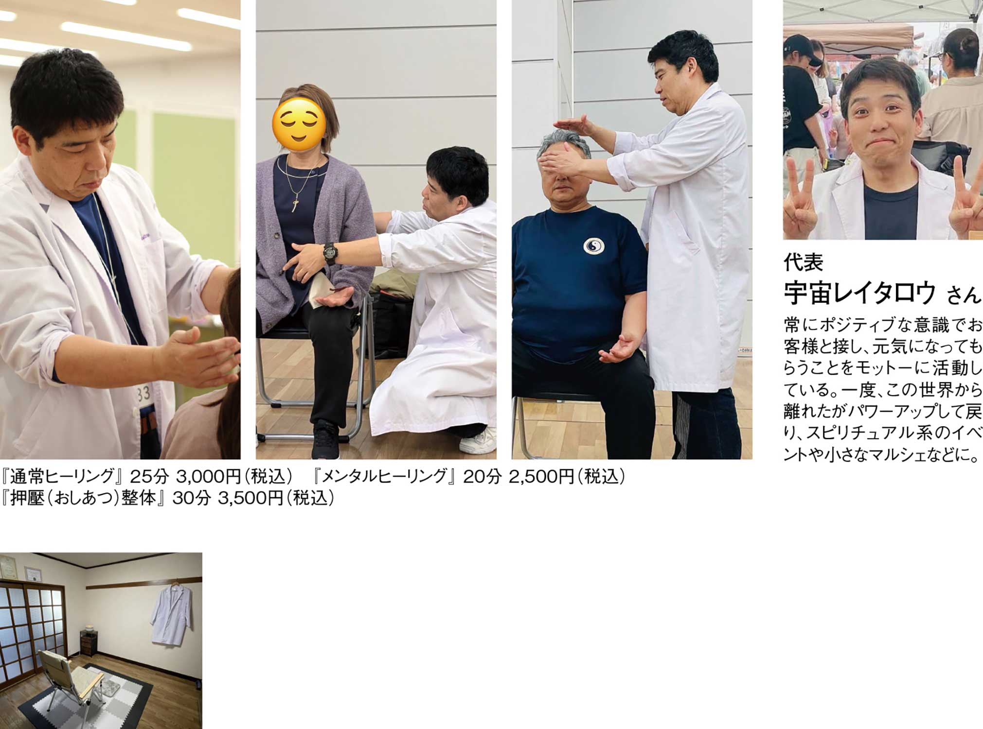 魂に活力を与えてくれるスピリチュアル整体セッションを提供する完全予約制のプライベートサロン『コスモス身療所』。代表の宇宙レイタロウさんは、レイキを中心としたエネルギーワークや丁寧な対話を通じて、日々の疲れやストレス、慢性的な不調にやさしく寄り添っている。
