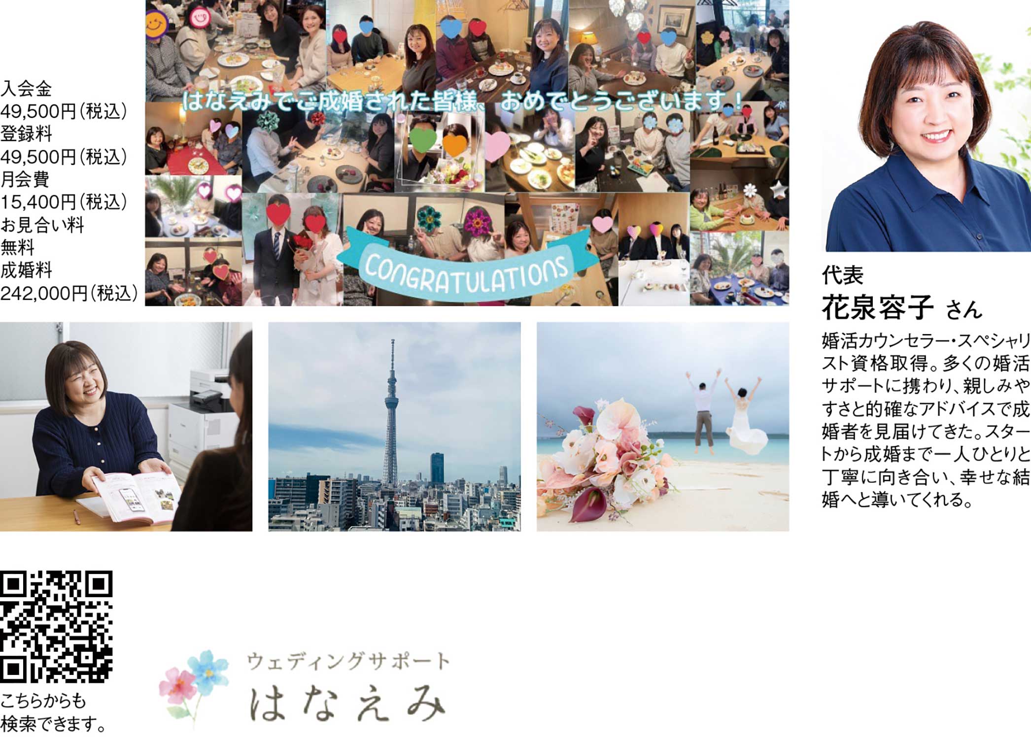 『ウェディングサポートはなえみ』は、会員数No・1の「IBJ加盟店」で、最新アプリと質の高いサポートの良いとこどりが魅力の結婚相談所。お相手探しは、スマートフォンやパソコンで好きな時間に自由に検索し、専属アドバイザーがプロフィール作成から、お見合いの日程調整はもちろん、交際中の悩みや相談などまで、すぐに対応してくれる。
