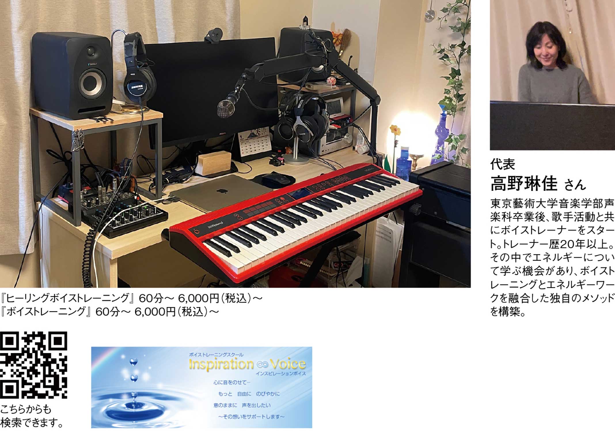本格的なボイストレーニングとエネルギーワークを融合した、他にはないヒーリング効果の高いボイストレーニングを学べる『Inspiration ∞ Voice』。コンセプトは「楽しく歌うことで人を幸せに」。トレーナーの高野琳佳さんが、スピリチュアルな感受性を生かし、声から一人ひとりの個性を細かく読み取り分析したレッスンを行う。呼吸法や発声器官、身体の整え方など基礎からしっかり学べるので初心者の方も安心だ。
