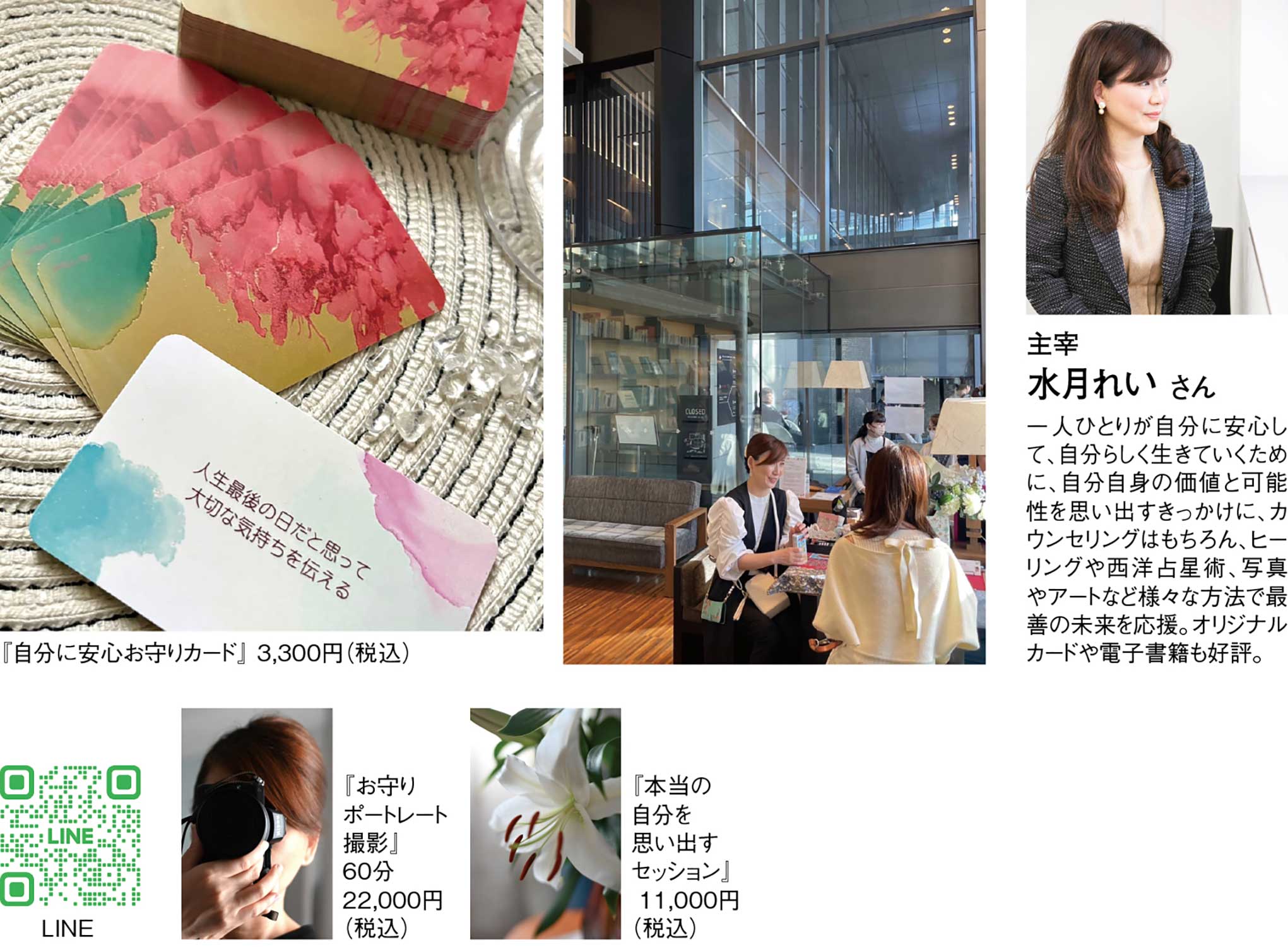 カウンセリングやヒーリング、西洋占星術などを通して、一人ひとりに寄り添い、「本当の自分とつながり、人生を切り開く」ためのサポートをしている水月れいさん。安心感をテーマに、パッケージデザインからアートワーク、メッセージまですべて自作のオリジナルカードは、自分の気持ちがわからなくなった時や自分自身の価値、可能性を思い出すきっかけになるお守りのよう。水月さん自身が日々感じてきた物事を多角的視点で捉え、人生を楽しむことやあたたかなメッセージが込められたカードからは、張りつめていた気持ちがほぐれていくような優しさが伝わってくる。お財布や手帳に入れて持ち歩いたり、日常のスキマ時間にカードのメッセージに身をゆだねてみるのもオススメ。毎日使い続けているうちに、自然と「自分に安心できる時間」が増えて心軽やかに過ごせそう。クラウドファンディングでも多くの共感と応援を集めたオリジナルカードを通して、日々を頑張るすべての人に「自分を大切にする時間」と「セルフイメージを見直す機会」を届け続けている。また、パリで開催された展覧会でアート作品の展示デビューを果たし、「審査員特別賞」を受賞。その優しさと創造性で、国内外を問わず多くの人の心にそっと寄り添っている。